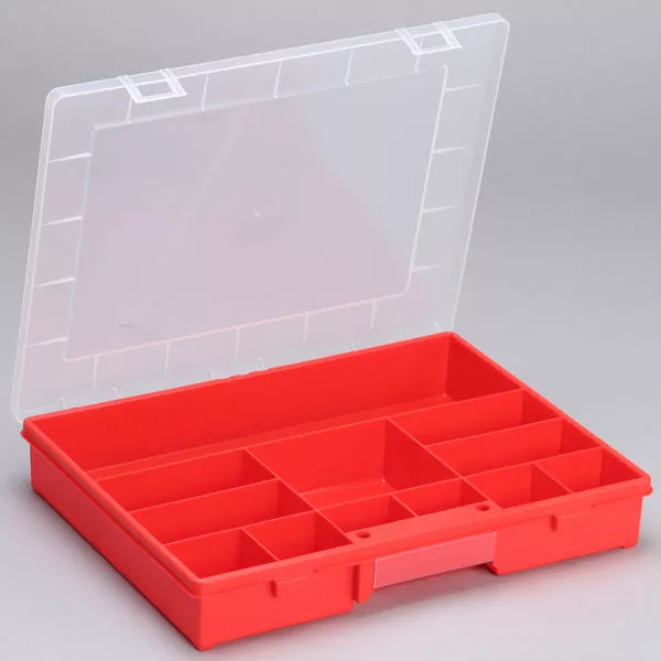 mit fester Facheinteilung, teilweise mit Trennstegen, Fächer schließen fest mit transparentem Deckel ab, freie Grifffläche zur Beschriftung mittels Klebeetikett, passend zu EuroPlus Depot 37Farberot, transparentSerieEuroPlusBreite (mm)370,00 mmMarkeAllitHöhe (mm)60,00 mmModellBasic 37/12Tiefe (mm)295,00 mmAnzahl der Fächer bis (st)12 stArtikeltyp KleinteileaufbewahrungSortimentskastenMaterial KleinteileaufbewahrungPolypropylenGewicht0.59KG